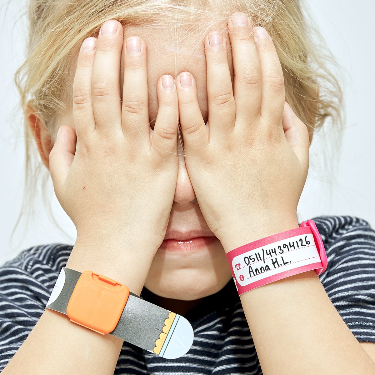 Das Infoband ist ein wiederverwendbares Armband für Ihr(e) Kind(er). Darauf notieren die Eltern mit einem normalen Kugelschreiber ihre Kontaktdaten.